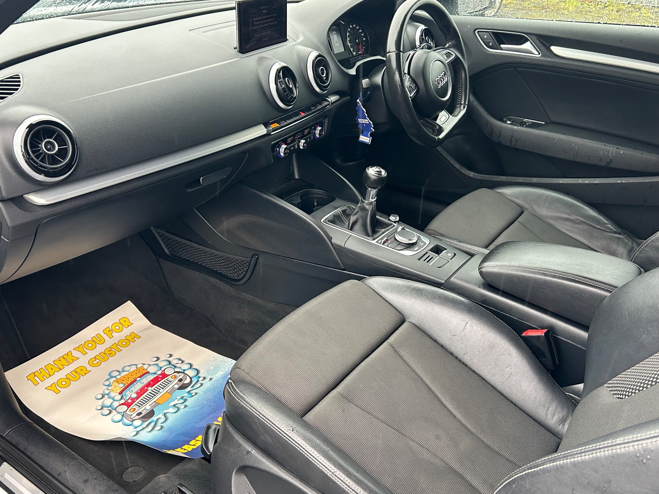 Car is also highly equipped with: 18in Alloy Wheels - 5-Parallel Spoke Design Partly Polished, AMI - Audi Music Interface, ASR - Anti Slip Regulation, Active Bonnet, Air Vent Sleeves - Aluminium Look, Alarm - Thatcham Category 1, Aluminium Interior Elements, Audi Drive Select, Electrically Adjustable and Heated, Door Sill Trims with S Line Logo, Dual-Zone Electronic Climate Control, EBD - Electronic Brakeforce Distribution, EDL - Electronic Differential Lock, ESP - Electronic Stability Programme, Electromechanical Parking Brake, First Aid Kit, Fog Lights - High Gloss Black, , S Line Badges on Wings, S Line Body Styling, S Line Design Front and Rear Bumpers Side Grilles and Dffusers in Platinum Grey, S line Design Front Bumper-Rear Diffuser-Side Sills and Roof Spoiler, SDHC Card Reader x2, Seat Belt Reminder for All Seats, Seats - 60-40, Secondary Collision Brake Assist, Speakers x8, Spoiler - Body Coloured, Spoiler - Roof, Sport Suspension, Sun Visors - with Covered Vanity Mirrors, USB Connection, Voice Control - Navigation, Warning Triangle, Window Surrounds - Aluminium, Rs3 exhaust tips, plus much more.